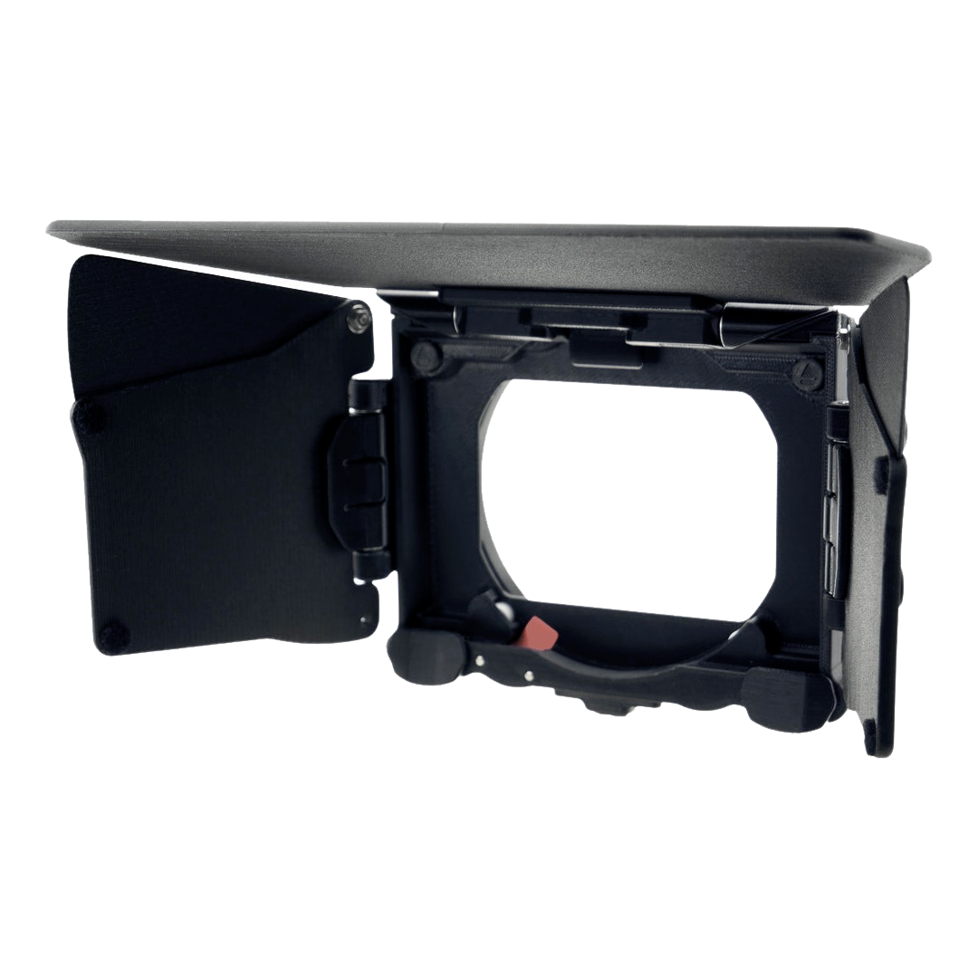 Abracam propose une matte box ultra légère “Clip‑On”, conçue pour les tournages sur gimbal, steadycam ou rigs légers. Selon la version, elle peut accueillir jusqu’à trois filtres 4 × 5,65″ (ou 4 × 4″) ainsi qu’un filtre circulaire (par exemple un polarisant) de 114 mm, contrôlé via une molette en caoutchouc.