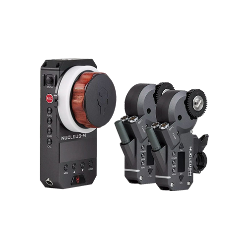 Le Tilta Nucleus‑M est un système de contrôle sans fil pour objectifs (3 canaux : focus, iris, zoom), combinant une unité FIZ, des poignées et des moteurs. Il fonctionne sur 2,4 GHz avec une portée allant jusqu’à 300 m environ.