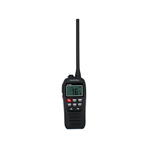 Le Plastimo SX-400+ est une VHF marine portable conçue pour la navigation, étanche et flottante (IPX7), offrant une puissance de transmission de 5 W pour des communications fiables même à distance.